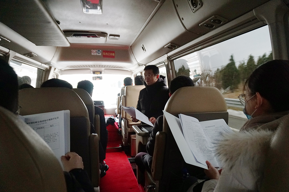 在前往觀摩現(xiàn)場(chǎng)途中,集團(tuán)綜合部副部長(zhǎng)安少帥向市委組織部、市財(cái)政局和集團(tuán)領(lǐng)導(dǎo)詳細(xì)介紹本次觀摩活動(dòng)的行程安排。