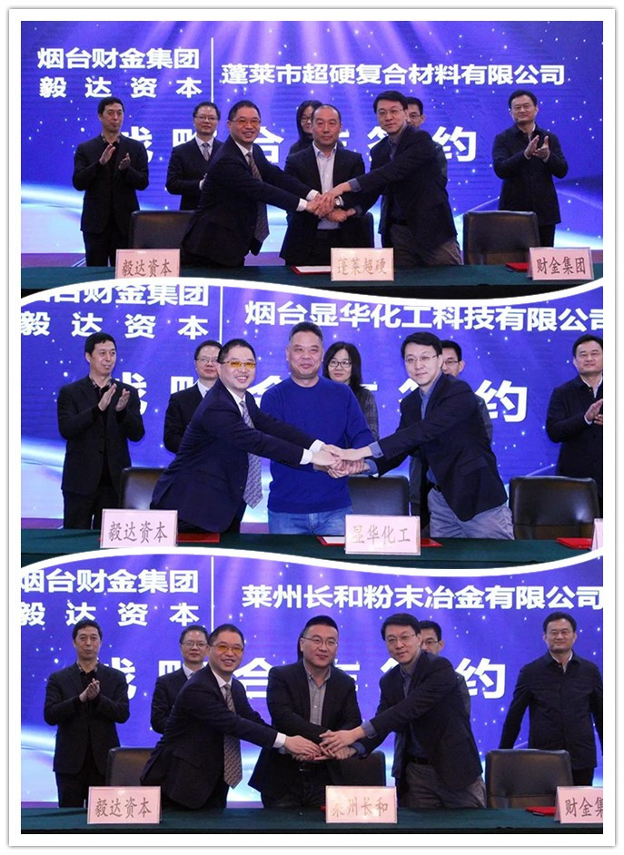 12月30日下午,新舊動能轉(zhuǎn)換毅達基金在東方海天酒店舉行投資項目集中簽約儀式,先后與煙臺顯華化工科技有限公司、萊州長和粉末冶金有限公司、蓬萊市超硬復合材料有限公司三家企業(yè)簽訂股權(quán)投資戰(zhàn)略合作協(xié)議。市發(fā)改委、財政局、金融監(jiān)管局、科技局相關(guān)領(lǐng)導受邀出席,與煙臺財金集團董事長劉海彬、毅達資本創(chuàng)始合伙人樊利平等投資方領(lǐng)導、簽約企業(yè)代表共同見證簽約。