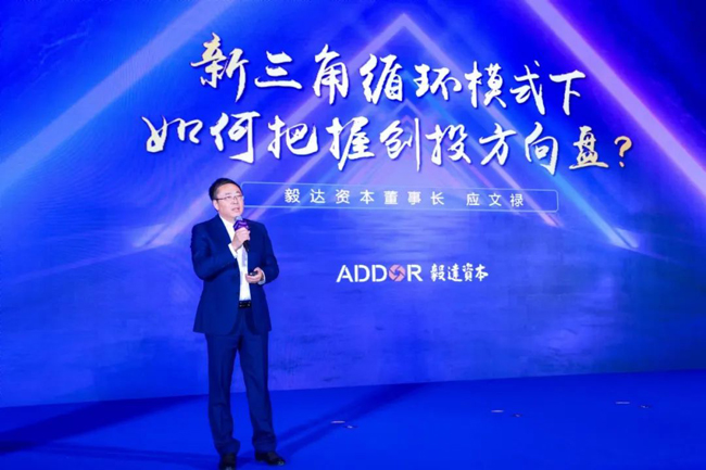 在主題演講環(huán)節(jié),毅達資本董事長應文祿發(fā)表了題為《新三角循環(huán)模式下,如何把握創(chuàng)投方向盤》的主旨演講。應文祿在演講中對比分析了現(xiàn)階段中美兩國在創(chuàng)投行業(yè)與資本市場存在的差異與差距,認為想要在科技革命中獲得領(lǐng)先優(yōu)勢,中國需進一步培育和壯大創(chuàng)業(yè)投資行業(yè)和資本市場。他指出,中國已進入科技創(chuàng)新、產(chǎn)業(yè)升級、進口替代三期疊加的歷史窗口期,經(jīng)濟增長模式正由“房地產(chǎn)-地方平臺-金融”的舊三角循環(huán),轉(zhuǎn)向“科技-產(chǎn)業(yè)-金融”的新三角循環(huán),創(chuàng)投資本要把握好手中的方向盤,在以光伏新能源為代表的雙碳產(chǎn)業(yè)、以AI為引領(lǐng)的數(shù)字經(jīng)濟產(chǎn)業(yè)、以創(chuàng)新藥和器械為代表的大健康產(chǎn)業(yè)、以芯片為代表的半導體產(chǎn)業(yè)等領(lǐng)域有效投資精準發(fā)力,支持創(chuàng)新創(chuàng)業(yè),做強做大資本市場。