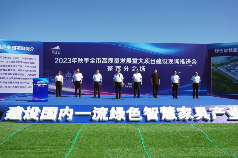 以高質(zhì)量項目建設(shè)推動高質(zhì)量發(fā)展。8月23日,煙臺舉行全市高質(zhì)量發(fā)展重大項目建設(shè)現(xiàn)場推進(jìn)會。在蓬萊分會場,智慧綠色高端家具板材二期項目舉行開工儀式。蓬萊區(qū)委書記林鈺濤、區(qū)長王長港及區(qū)委區(qū)政府領(lǐng)導(dǎo)班子其他成員出席推進(jìn)會,煙臺財金集團(tuán)董事長田序潤及新能智慧產(chǎn)業(yè)園全體員工共同參加活動。