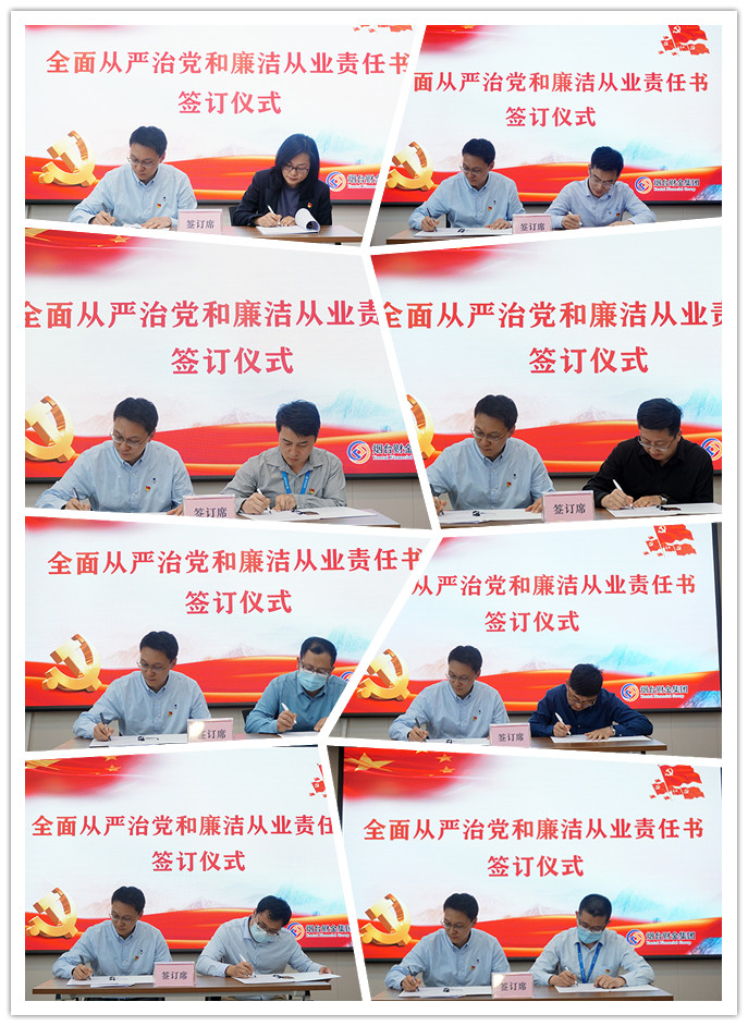 隨后,集團黨支部負責人分別與班子成員、中層領(lǐng)導干部簽訂了全面從嚴治黨和廉潔從業(yè)責任書,在集團形成以上率下、層層壓實責任的黨風廉政建設責任體系,進一步筑牢拒腐防變的思想道德防線,增強全體干部職工的廉潔自律意識。